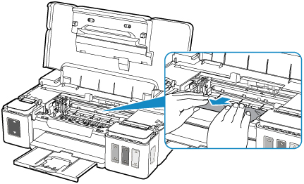 Når du flytter patronholderen, skal du holde på det øverste af patronholderen og langsomt lade den glide helt til højre eller venstre.
