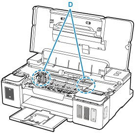 - Er der stadig papir i de tomme rum (D) til venstre og højre i printeren?