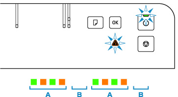 Εάν παρουσιαστεί σφάλμα στη εκτύπωση, για παράδειγμα, εάν το χαρτί τελειώσει ή μπλοκαριστεί, η λυχνία Προσοχή (Alarm) αναβοσβήνει ή η λυχνία ON και η λυχνία Προσοχή (Alarm) αναβοσβήνουν εναλλάξ.