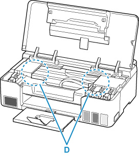 - È rimasta della carta negli spazi vuoti a sinistra e a destra (D) della stampante?