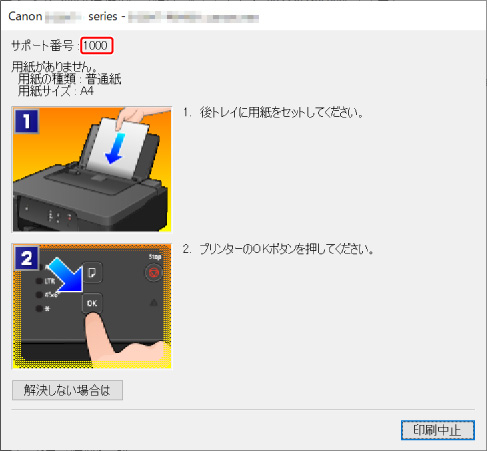 Windowsをご使用の場合は、メッセージとともに、サポート番号(エラー識別番号)が表示されることがあります。
