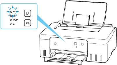 Изберете размер на хартията с помощта на бутона Избор на хартия (Paper Select) на принтера и натиснете бутона OK на принтера.