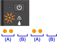 Als er een fout optreedt, knippert het Alarm-lampje en wordt een ondersteuningscode (foutnummer) op het computerscherm weergegeven. Bij sommige fouten knipperen het Alarm-lampje en het AAN (ON)-lampje afwisselend. Controleer de status van de lampjes en het bericht en neem de juiste maatregelen.