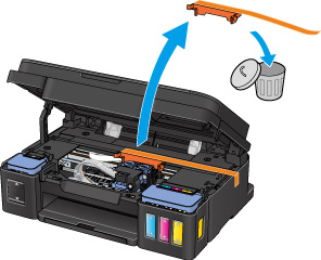 Öffnen Sie das Scan-Modul/die Abdeckung und stellen Sie sicher, dass das Schutzmaterial und Klebeband von der Patronen-Halterung entfernt wurden.