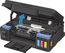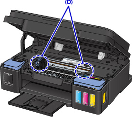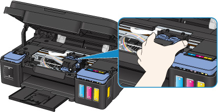 Als het vastgelopen papier zich onder de cartridgehouder bevindt, schuift u de cartridgehouder helemaal naar rechts of naar links, zodat u het papier gemakkelijker kunt verwijderen.
