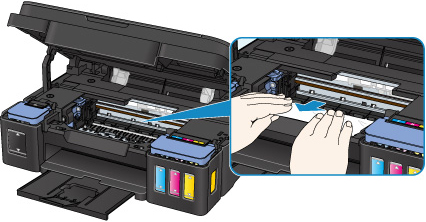 Controleer of het vastgelopen papier zich niet onder de cartridgehouder bevindt.
