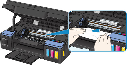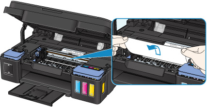 Als het papier scheurt wanneer u het eruit trekt, kan er een stukje papier in het apparaat achterblijven. Controleer het volgende en verwijder eventueel achtergebleven papier uit de printer.