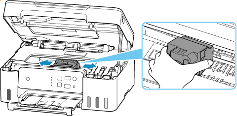 Kui ummistuse tekitanud paber on prindipea hoidiku all, liigutage prindipea hoidik paremasse või vasakusse serva olenevalt sellest, kuidas on paberit lihtsam eemaldada.