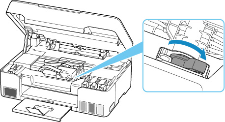 7. Stäng låsluckan på skrivhuvudet (E) och tryck ned den.