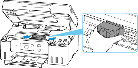 Når du skal flytte skrivehodeholderen, holder du skrivehodeholderen og skyver den sakte helt til høyre eller venstre.