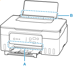 Kiểm tra 4 Có nhìn thấy giấy bị kẹt trong khe nạp (B) không?