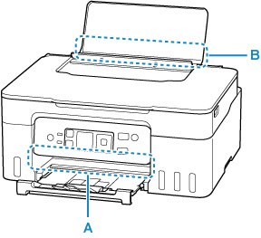 - Če papir ni zagozden (ni prikazanih kod za podporo), vendar se papir ne podaja oziroma ne izhaja normalno, glejte razdelek Kaj je treba storiti, če se papir ne podaja/ne izhaja normalno.