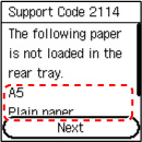 Če želite zamenjati papir v zadnjem pladnju s papirjem, ki je ustrezen za nastavitve tiskanja, in nadaljevati tiskanje, sledite spodnjim korakom.