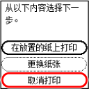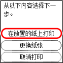 按钮选择在放置的纸上打印,然后按OK按钮。