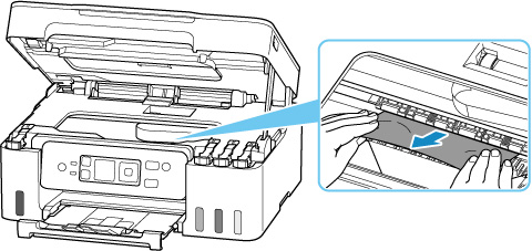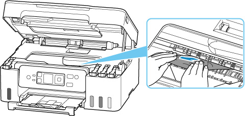 Als het papier scheurt wanneer u het naar buiten trekt, kan er wat papier in de printer blijven zitten. Controleer het volgende en verwijder eventueel achtergebleven papier uit de printer.