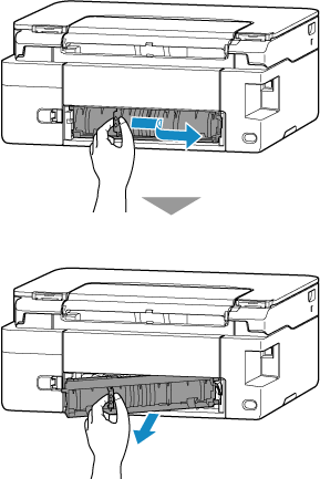 Opmerking- Als fout 1300 opnieuw optreedt, controleert u nogmaals de invoersleuf van de achterste lade. Als er een vreemd voorwerp in de achterste lade zit, raadpleegt u Controle 1 in Wat u moet doen als het papier niet normaal wordt ingevoerd/uitgevoerd en voert u de juiste stappen uit.