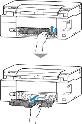 Als u het vastgelopen papier niet kunt verwijderen, volgt u de onderstaande stappen om de transporteenheid los te koppelen en verwijdert u daarna het papier.