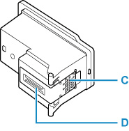Vidrör inte guldkontakterna (C) eller skrivhuvudmunstyckena (D) på ett skrivhuvud. Om du gör det kan skrivaren få problem med utskriftskvaliteten.