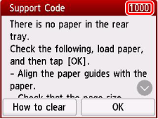Quando vengono visualizzati un codice supporto e un messaggio sul touchscreen della stampante: