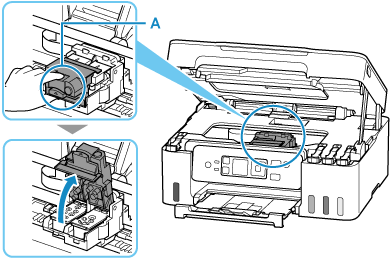 Pak knop (A) op het sluitklepje van de printkop vast om het te openen.