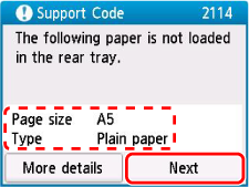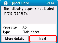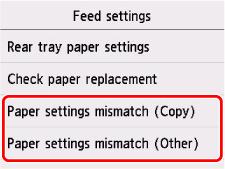 Selecteer Onjuiste papierinstell. (kopiƫren) (Paper settings mismatch (Copy)) of Onjuiste papierinstell. (overig) (Paper settings mismatch (Other)).