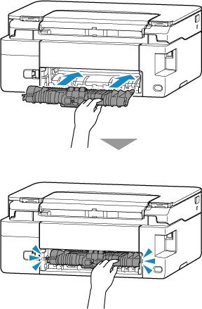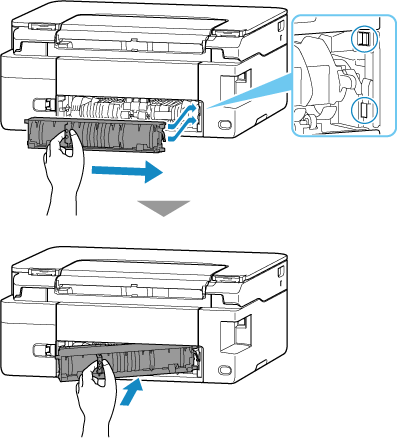 Duw de transporteenheid erin totdat deze de achterkant van de printer bereikt en op zijn plaats klikt.
