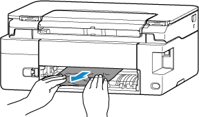 Houd het vastgelopen papier stevig met beide handen vast en trek het er langzaam uit.