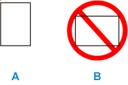 Plaats papier altijd in de lengterichting (A). Als u papier in de breedterichting (B) plaatst, wordt het papier mogelijk niet ingevoerd of kan het papier vastlopen.