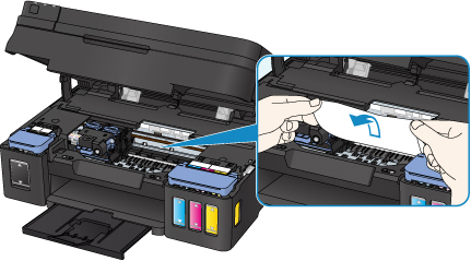 Als het papier scheurt wanneer u het naar buiten trekt, kan er wat papier in de printer blijven zitten. Controleer het volgende en verwijder eventueel achtergebleven papier uit de printer.