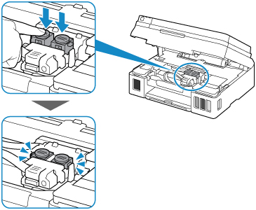 Viktigt!- När du tar bort kassetter ska du alltid öppna bläckbehållarlocken. Om kassetterna tas bort utan att bläckbehållarlocken öppnas kommer en bläckspolning att krävas som förbrukar mycket bläck.