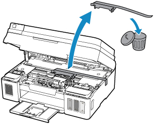 Öppna skannerenheten/luckan och kontrollera att skyddsmaterialet och tejpen har tagits bort från hållaren för kassetten.