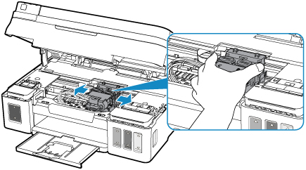 När du flyttar hållaren för kassetten håller du i överkanten på hållaren för kassetten och skjuter den försiktigt så långt åt höger eller vänster som möjligt.