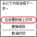 按钮选择在放置的纸上打印,然后按OK按钮。