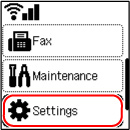 ของเครื่องพิมพ์เพื่อเลื่อนหน้าจอ หน้าแรก(HOME) ของเครื่องพิมพ์ และเลือก Settings แล้วกดปุ่ม OK
