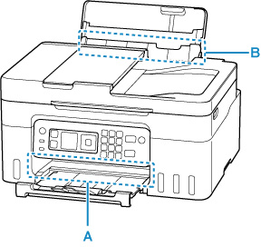 4. Kiểm tra 4 Có nhìn thấy giấy bị kẹt trong khe nạp (B) không?