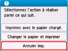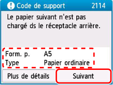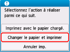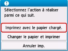 Remarque- En fonction des paramètres de voter imprimante, le message Imprimez avec le papier chargé. pourrait ne pas s'afficher.