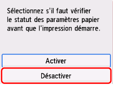 Pour désactiver la fonction de détection de discordances des paramètres de papier, suivez les étapes ci-dessous.