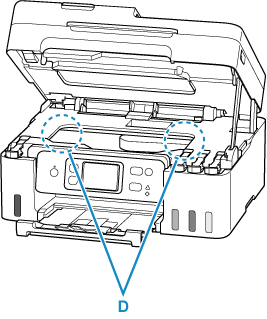 - Sobrou algum papel nos espaços vazios à esquerda e à direita (D) da impressora?