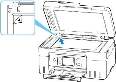 Coloque o lado impresso voltado para baixo e alinhe a marca de