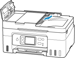開啟文件蓋板,然後從自動送稿機背面慢慢拉出夾住的文件。