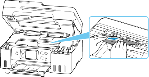 注釋- 如果1300錯誤再次出現,請再次檢查後端托盤的送紙槽。 如果後端托盤內有異物,請參閱沒有正常進紙/出紙時如何操作中的檢查1並採取適當措施。