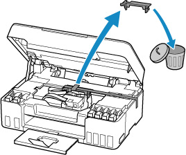 Aprire l'unità di scansione / coperchio e assicurarsi che il nastro di spedizione e il materiale di protezione siano stati rimossi dal supporto della testina di stampa.