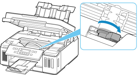 Avaa skannausyksikkö/kansi ja avaa musteen venttiili kääntämällä musteen venttiilin vipu tiukasti oikealle.