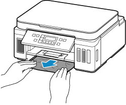 Dopo aver riposto l'estensione del vassoio di uscita e il vassoio di uscita della carta, estrarre il cassetto e rimuovere lentamente la carta inceppata con entrambe le mani.