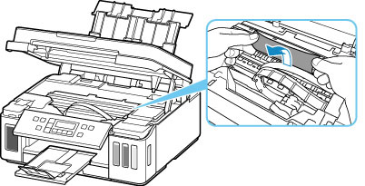 Om papperet har fastnat under hållaren för skrivhuvudet flyttar du hållaren för skrivhuvudet åt vänster eller höger, beroende på vilket som är enklast, för att kunna ta loss papperet.