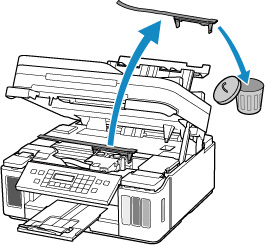 Otwórz moduł skanera/pokrywę i upewnij się, że na uchwycie głowicy drukującej nie zostały żadne resztki taśmy zabezpieczającej ani materiału ochronnego.