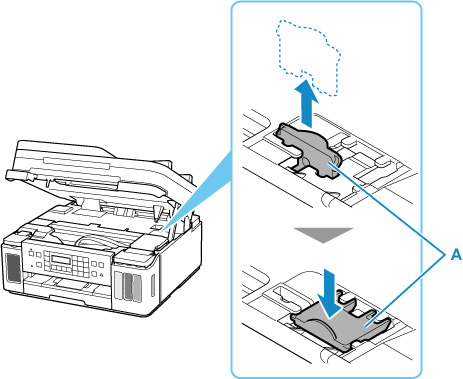 Öppna skannerenheten/luckan och dra vagnstoppet (A) rakt uppåt.