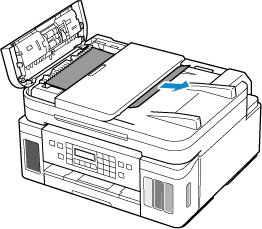 เปิดฝาครอบเอกสารและค่อยๆ ดึงเอกสารที่ติดค้างออกจากด้านหลังของ ADF