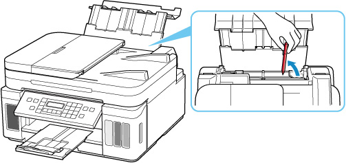Nếu có bất kỳ vật lạ nào trong khay sau, đảm bảo tắt máy in, rút nguồn, rồi gỡ vật lạ ra.