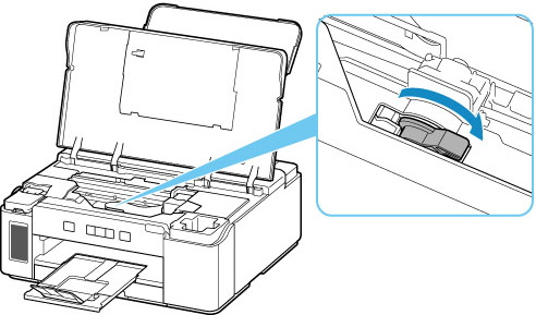 Deschideţi capacul superior şi deschideţi supapa de cerneală înclinând pârghia supapei de cerneală complet spre dreapta.